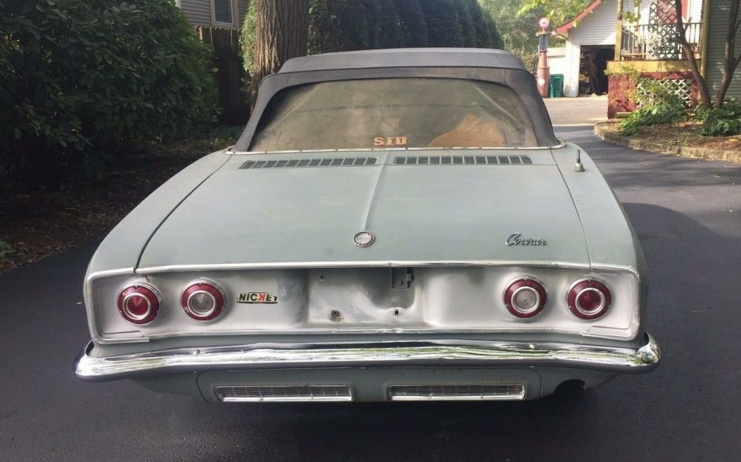 There’s an air-cooled and turbocharged 6-cylinder engine in this Corvair, which pairs to a 4-speed manual transmission. The drivetrain supposedly only has 40,403 miles on it, and with a new battery and some fresh fuel, the seller was able to fire the engine up.