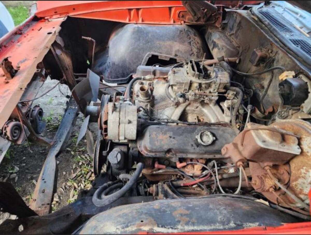 Somebody should send the picture of the GTO motor to a Pontiac expert. I don’t know how to read the full VIN but the first digits confirm it is a 1969 GTO. What is most interesting is it has headers, and what looks to me like an aftermarket intake and Holley carburetor. It also has headers, which you can see on the passenger side in one of the auction site pictures. It also has under-dash gauges, and pull handles on the passenger side that look added. The car is a mess, but I think it might be worth trying to see if it came with a RAM IV motor.
