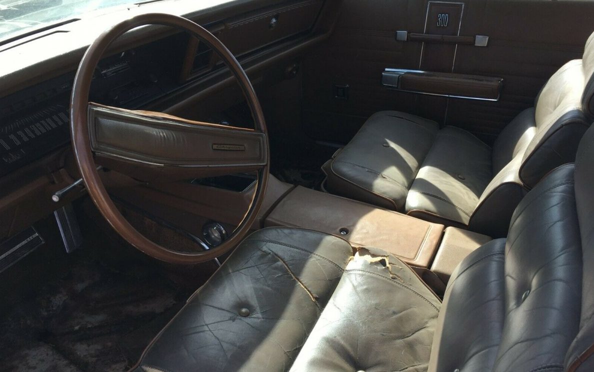 The running powerplant is a 375 gross HP, 440 CI “TNT” V8 connected to the sole available transmission, an A-727 TorqueFlite, three-speed automatic. The seller adds, “car does run and drive but needs new tires and brakes”. The mileage is recorded as 78K miles so if that’s a genuine measure, this 300’s engine should still have quite a bit of life to it.