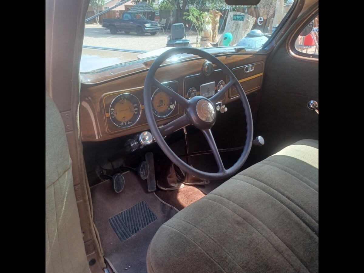 A look from the other side reveals more of the shame. From the door jams to the steering wheel, the interior is almost perfect. The only faux pas is the decision to use late-model floor mats in the car. A closer look reveals that the car is equipped with a heater. Believe it or not, a heater was an option for some cars up into the sixties. We can also see that there is a crank in the dashboard to facilitate opening the bottom of the windshield to allow for more ventilation. For those who haven’t experienced a car built before air conditioning, vent windows, cowl vents, roll-down windows, and crank-out windshields provided all the climate control you were going to get. The folks back in the day were tough compared to us because they had to be.