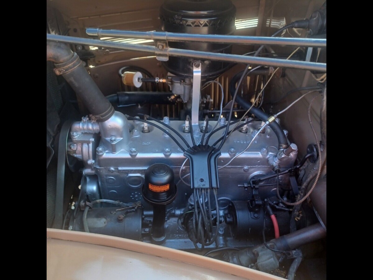 A look under the hood reveals a pristine inline six-cylinder engine resplendent in MOPAR silver paint. The decal is present for the oil filter, as is the metal identification plate on the generator. What we can see of the cowl points to this being the original paint. There is fading and what appears to be a bit of chipping. Older cloth wire can be seen attached to the generator and the oil bath air cleaner is still doing a poor job of filtering the outside air from contaminants.