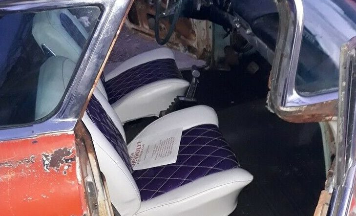 On the other hand he (it had to be a guy who did this) managed to f- up nearly everything that is distinctive about a ’59 Impala, from the hood scoops to the tailfins. It’s possible his wife/girlfriend/significant other suggested the always tasteful purple diamond tufted seat inserts. I’m confident there’s plenty of blame to spread around on this one.