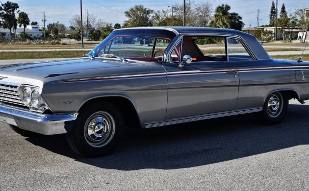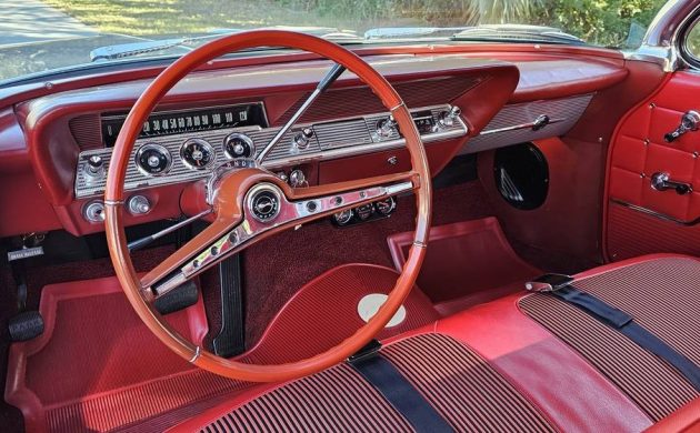New for 1962 was the 327 cubic inch V8. The seller’s website in one place says this car has that engine, but elsewhere (including craigslist) credits it with a 283. Whatever the case, it’s paired with a 2-speed Powerglide automatic transmission and should drive as well as it looks. There is no indication that the Chevy needs anything more than a new owner to preserve it as well as its last.