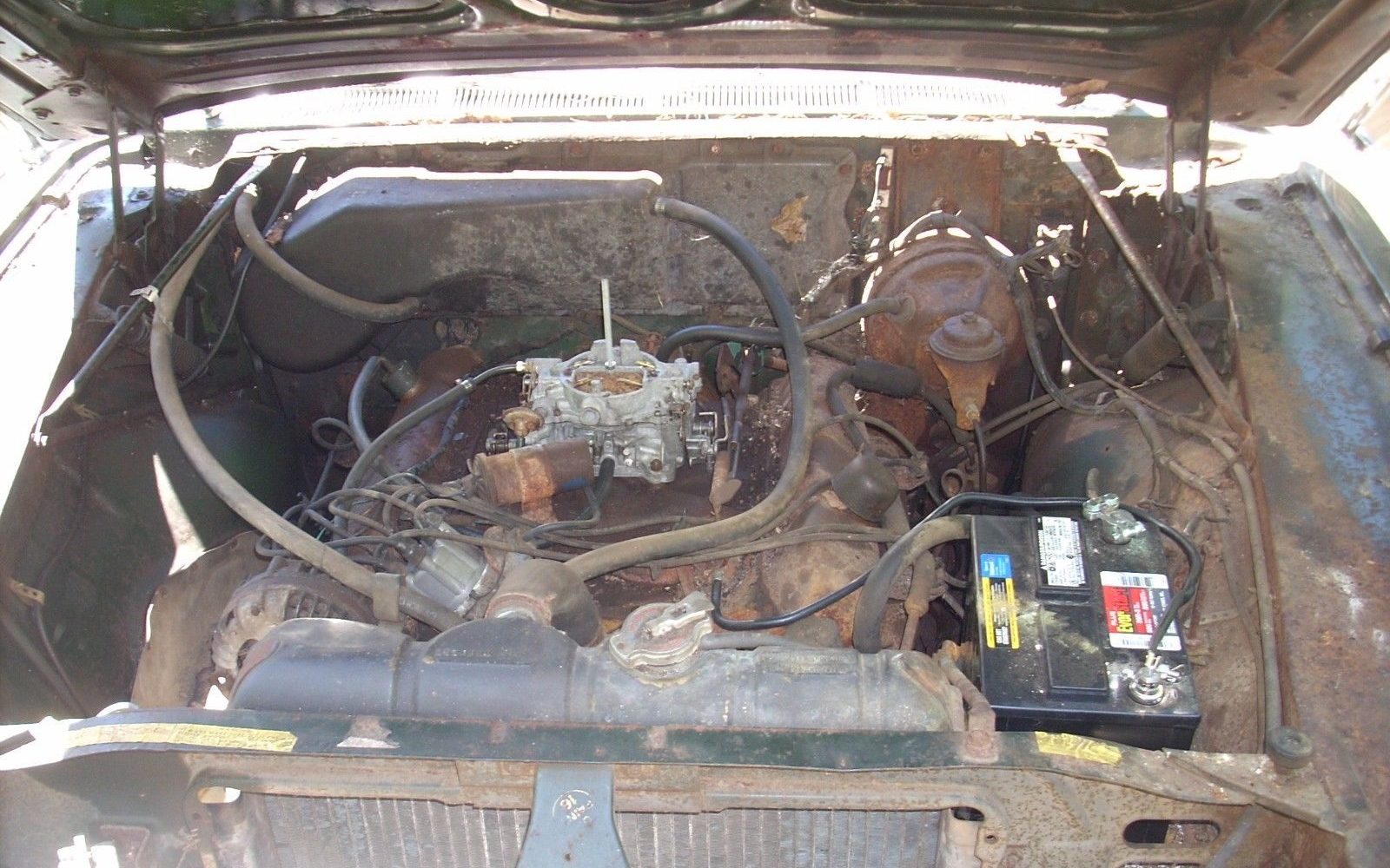 Not sure how the seller can state, “no rust issues”?? I can see obvious rust thru on the lower passenger rear quarter and passenger rear bumper……..and extensive surface rust underhood and most likely underneath! Despite all that, it’s a cheap enough project and I’m bidding! Wish me luck. Hopefully bidding won’t get run up too high!