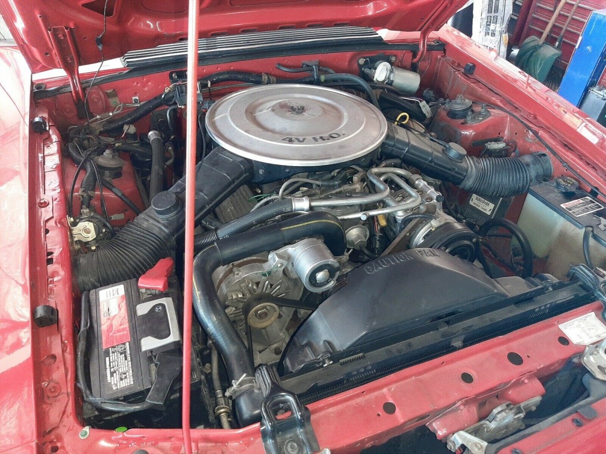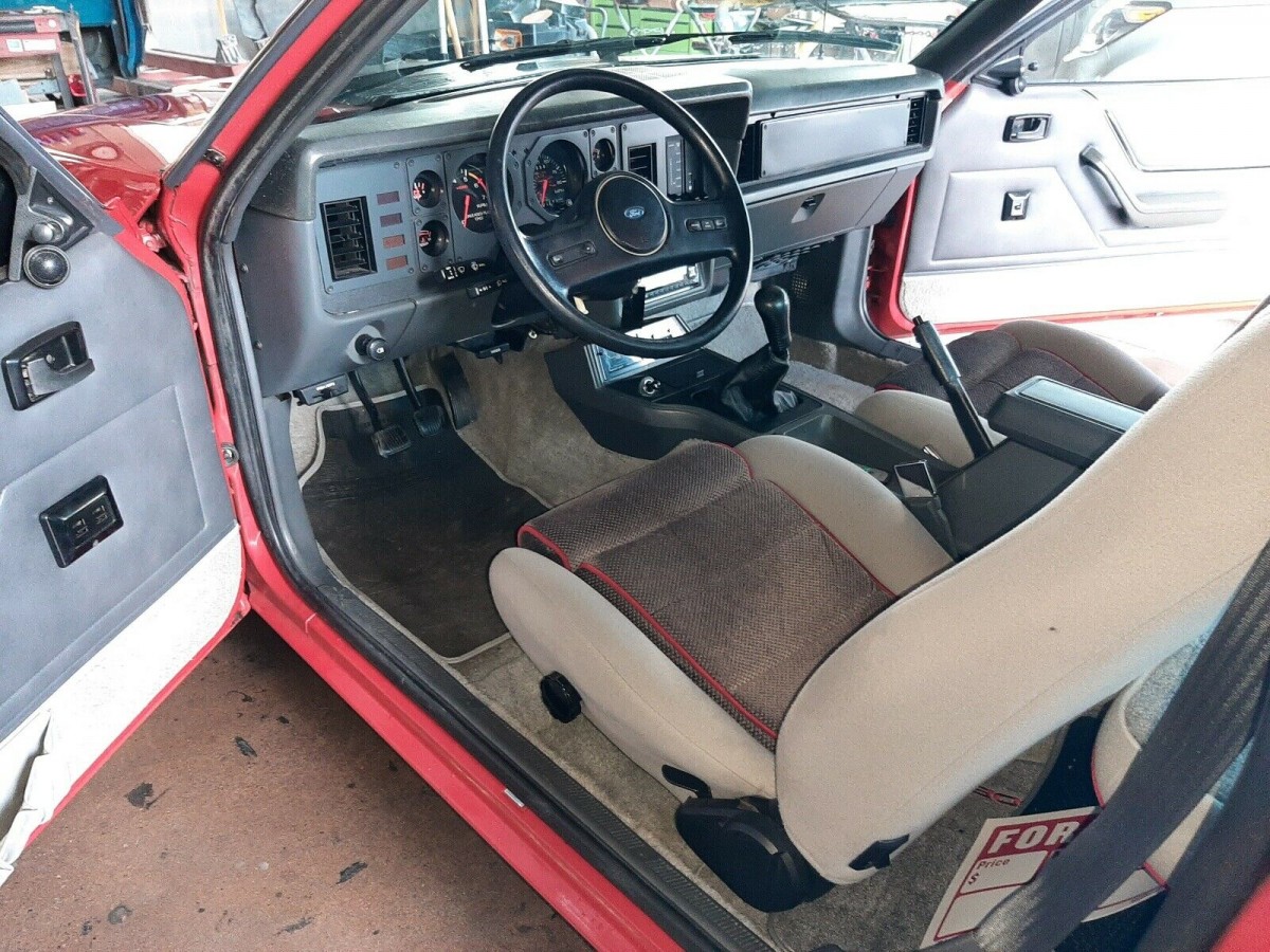 It’s impressive to consider that the Jalapeno red paint on this Mustang is original, but that’s indeed what the advertisement states. Though it uses wheels from a later Mustang Cobra, the seller includes the original wheels with the vehicle’s sale, and it also features period-correct Marchal fog lights with covers.