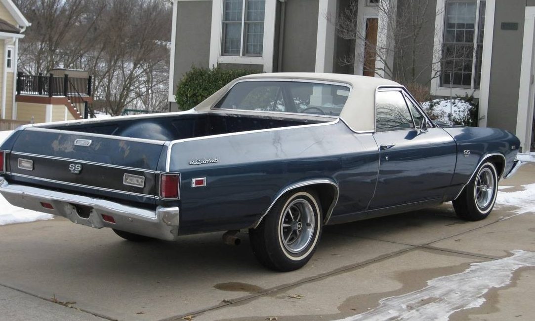 Memories!!! In the mid 80’s, my first car was a Le Mans blue 71 El Camino with black bench interior and th350 on the column, ps, pb and a/c. The nylon timing gear had stripped and it was a non runner. I paid $300 for it, on payments. It was originally a 350 2 barrel that got swapped for a factory cast iron 4 barrel and late 60’s q jet, headers and Crane “blueprint” 350/ 300 hp cam when my dad brothers and I fixed the bad timing gear. It wasn’t an SS or anything, although I later added an SS hood dash and disc brakes from a wrecked and burnt from the back black with black bench interior 70 Chevelle SS my brother bought for $250 (It was a real L78 car, but the engine and trans didn’t come with it. The seller wanted another $500 for that, but we were too broke! (and I would have never been able to afford the gas it would have drank anyway). I wish I could get a do over on that one too) The 12 bolt posi rear axle with either 3.73 or 4.10 did come with it, but I never got around to installing it. It was too low for my needs anyway, as the Elco was my daily driver and I was a broke kid who could barely afford gas for a 350 with 3.08 gears! (I sold the axle years later for $500) I bought a 68 or light green 69 el camino parts car for $100(!) for the tailgate, bed and tailgate trim, and parted the rest due to the floors being rotted out. It would be a somewhat easy fix nowadays, with the availability of replacement sheet metal! I wish I still had either one or both!
