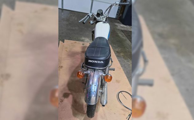 As you can see, the taillight is missing, so the next owner will have to hit up eBay and other sources for a replacement. They say it has newer tires, and also a newer gas tank, side covers, and seat. It also comes with an electronic ignition that isn’t installed. It needs a new petcock for the gas tank, but that shouldn’t be too hard to find online. The big glitch may be a missing number on the VIN, according to the seller who tried to register it, but the DMV balked at the number. The seller has owned this one for two decades, and it’s been parked in their garage for the last decade, according to the listing.