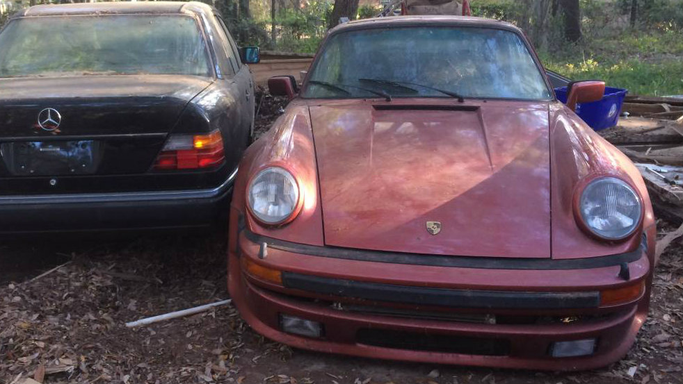 Looks like the shed mentioned was recently torn down. Maybe a free possum comes with the Porsche. I looked at one of these in 1992 at Automobile Atlanta. The Turbo was priced about $27,000. One thing that stood out was its unique rear bumper. It had cooling holes that helped engine heat to escape and the rear license plate mount allowed the plate to stand about an inch away also for cooling.