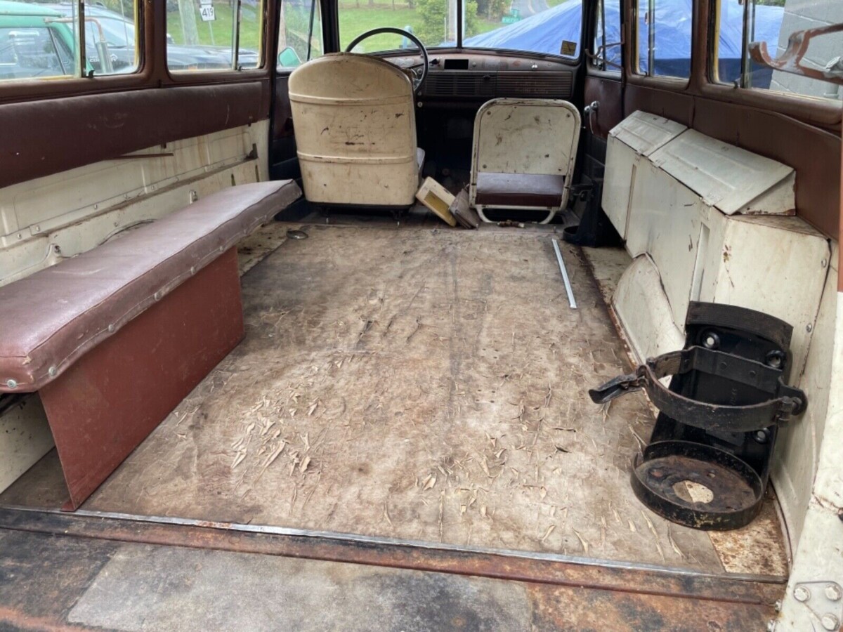There aren’t many photos of the simple, utilitarian interior, but it looks pretty good for a 70-year-old military ambulance that probably wasn’t pampered. There’s a detail of the floor pan rot and a photo of the back of the ambulance which I’m sure could tell some interesting stories.