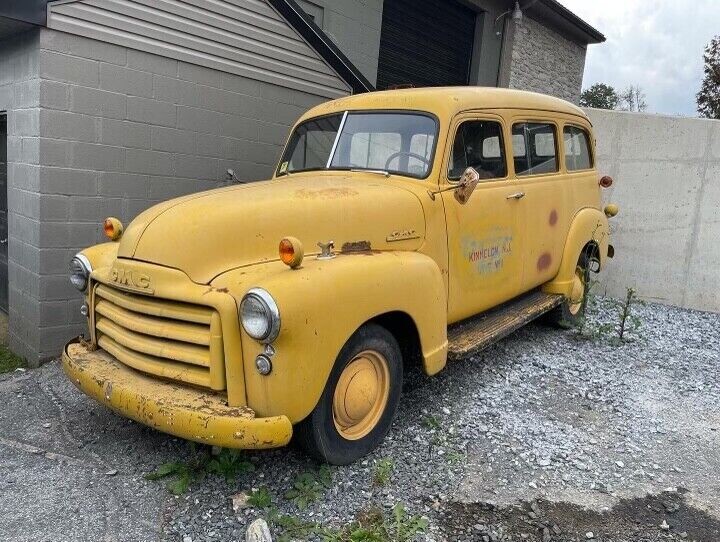 It should be noted, GMCs were called “New Design”, as opposed to the Chevy “Advance Design”. There is a bit of controversy, about the name. GMCs were initially called GMC-Carryall Suburbans, as mentioned, but I think Chevy dropped the “Carryall” part, and GMCs retained just the Carryall. Most Chevys were simply Suburbans. Like the tag says, most of these window ones were used for ambulances, and not to disagree, but were almost never used. These were peacetime units, where maybe some soldier fell off a plane, or dropped a transmission on their foot, not like it saw blood and guts combat duty. Not sure the entity, if it even was military, it was obviously painted school bus yellow at some point. I hope they didn’t paint over the stainless grill, a GMC exclusive. Neat find, 1 bid, so interest is pretty low, common for this sort of thing today, it just shows, however, this stuff is still coming out of the woodwork 50 years later.