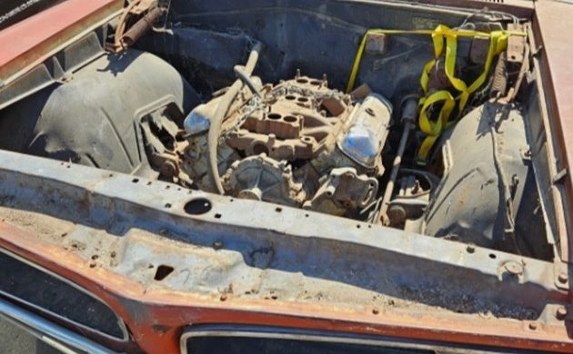 The three cars in this listing belonged to the seller’s deceased uncle. Said uncle likely bought the two LeMans (one a ’66 and the other a ’65 post-coupe) to source parts for the matching numbers GTO. The seller refers to the other two as “clones,” also having 389 engines, but as 4-barrels, not Tri. One has an automatic tranny while the second is also a 4-speed. One engine is sitting out while the other is simply perched in the bay.
