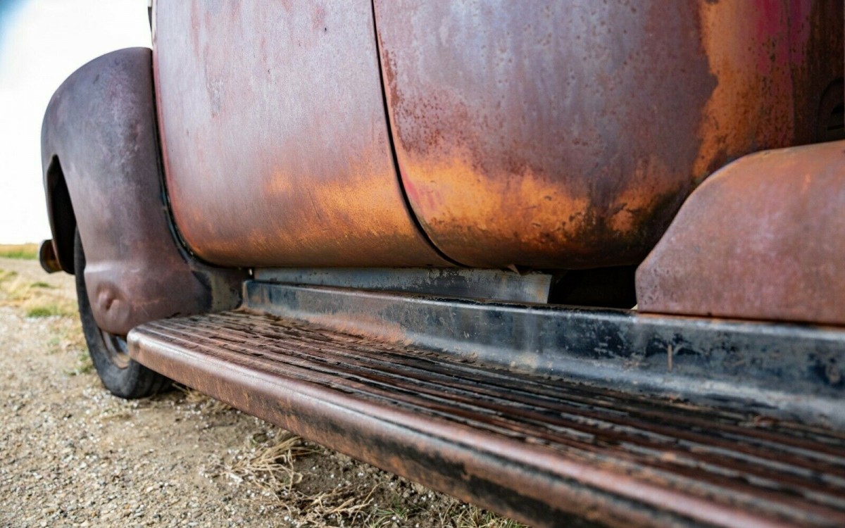 This seller specializes in old farm trucks from Canada and they have found some really cool trucks over the years, but this one has to be my personal favorite. The way it’s aged is just too cool and while I’m not a fan of rust by any means, this one really does look to be solid. Just take a look at this cab corner, we’ve looked a lot of trucks from this era with nice paint jobs and more rust in the cab corners.
