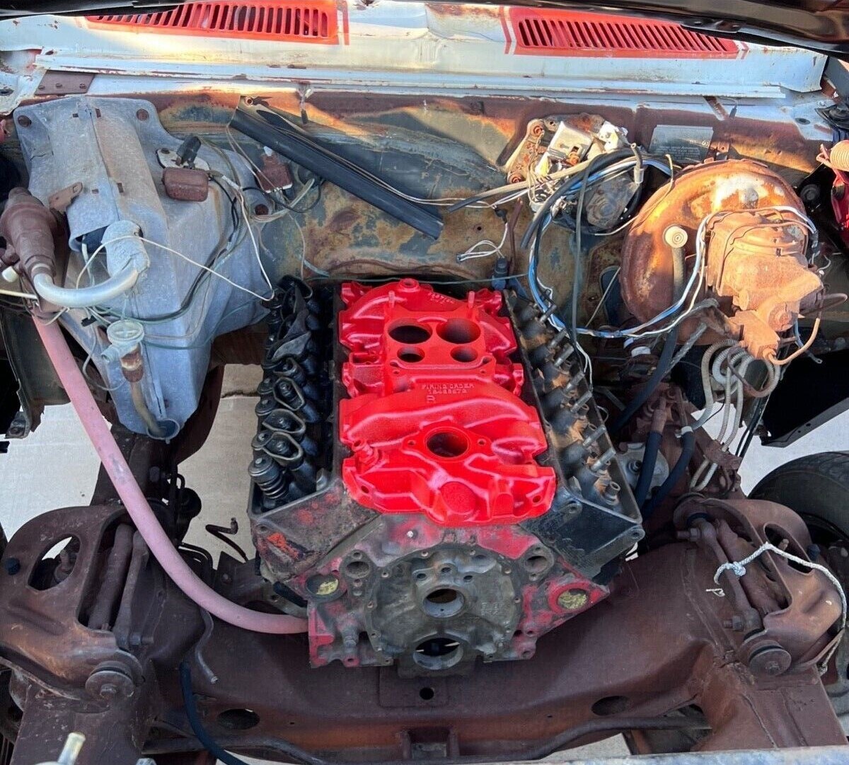 The resto attempt is slap-dash, like the seller is trying to doll up a rust bucket for a quick flip. Not sure if block is original? Didn’t Chevy stamp a partial “vin” on the right front pad in ’69 ? Or at least the last 6 numbers.