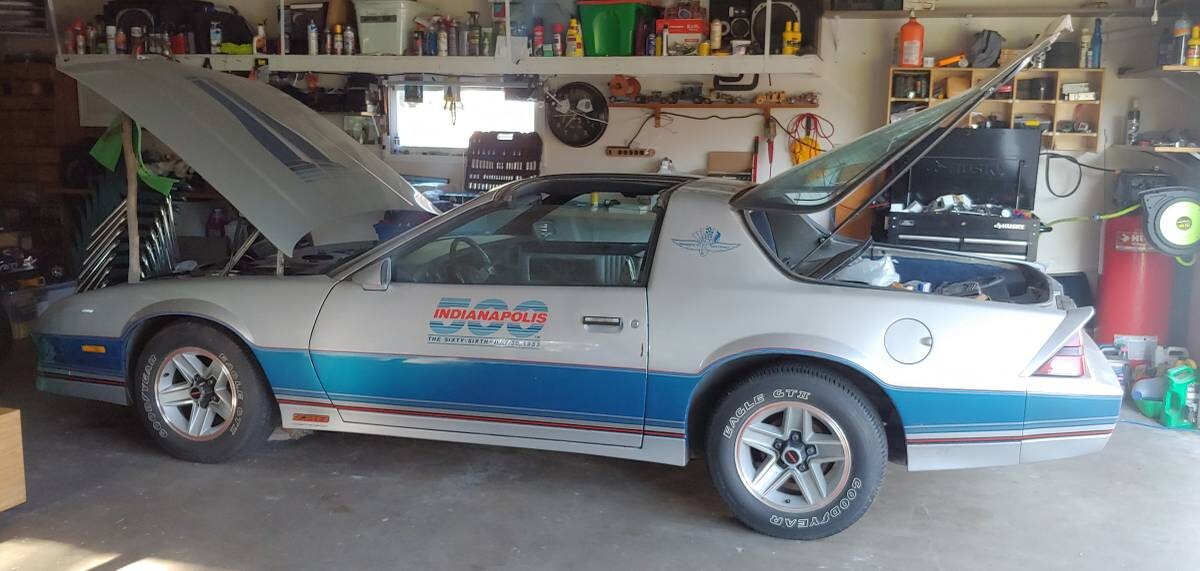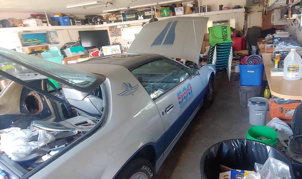 The Indy 500 replicas featured special two-tone silver/blue paint and special striping, orange pin-striping on 15-inch Z28 wheels, and a silver/blue interior with six-way Lear-Seigler manually adjustable seating. There was no change in the performance side of the car to match the real pace car that was equipped with a highly modified, all-aluminum 5.7-liter V8 (the replicas had the 5.0-liter). The seller purchased this Z28 with plans to restore it, but things change, and the seller is moving and cannot take the car along. We’re told it runs well and can leave the garage under its own power.