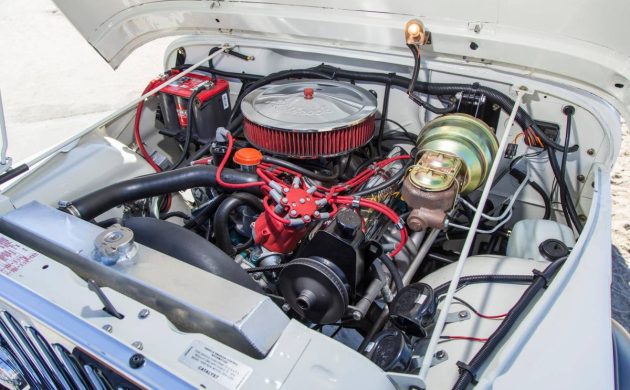 The seller refers to this Jeep as restored, but I think refurbished is a more appropriate term. It retains its original, rebuilt three-speed manual transmission and Dana 20 transfer case, but the numbers-matching 304ci V8 is ancient history. The powerplant under the hood is an AMC unit, but it is a rebuilt 360. The news doesn’t end there, because it sucks in fuel and air via a Howell fuel injection system, and the spent gases exit via Hedman ceramic-coated headers and a 2½” dual exhaust with Borla mufflers. In keeping with a “total package’ approach, the Jeep benefits from a 2½” lift, utilizing components from Fox Shocks and Old Man Emu. An MSD ignition system supplies a healthy spark, while power-assisted steering and brakes make maneuvering a breeze in confined spaces. The Jeep’s odometer shows 3,700 miles, which appears to be the distance covered since this build ended. The vehicle runs and drives perfectly, as demonstrated in this YouTube video.