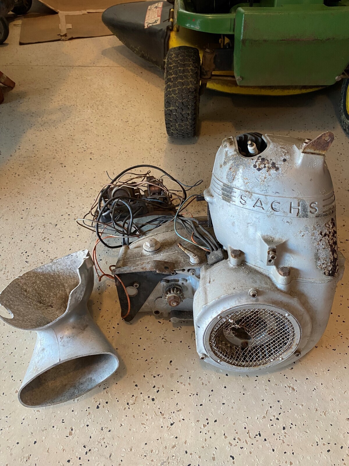 Much has been done. The car is a roller, with a rebuilt chaincase and rear brake, new tires and powder-coated rims, a new steering wheel with column and steering linkage, a new wiring harness (not installed) and the plexiglass dome top that needs to be attached. The main job awaiting the new owner is rebuilding and installing the engine, but the single-cylinder, two-stroke 191-cc Fichtel & Sachs engines (with just 9.9 horsepower) aren’t hugely complex—it’s not like the Porsche four-cam Carrera motor. To go in reverse, the air-cooled engine ran backward!