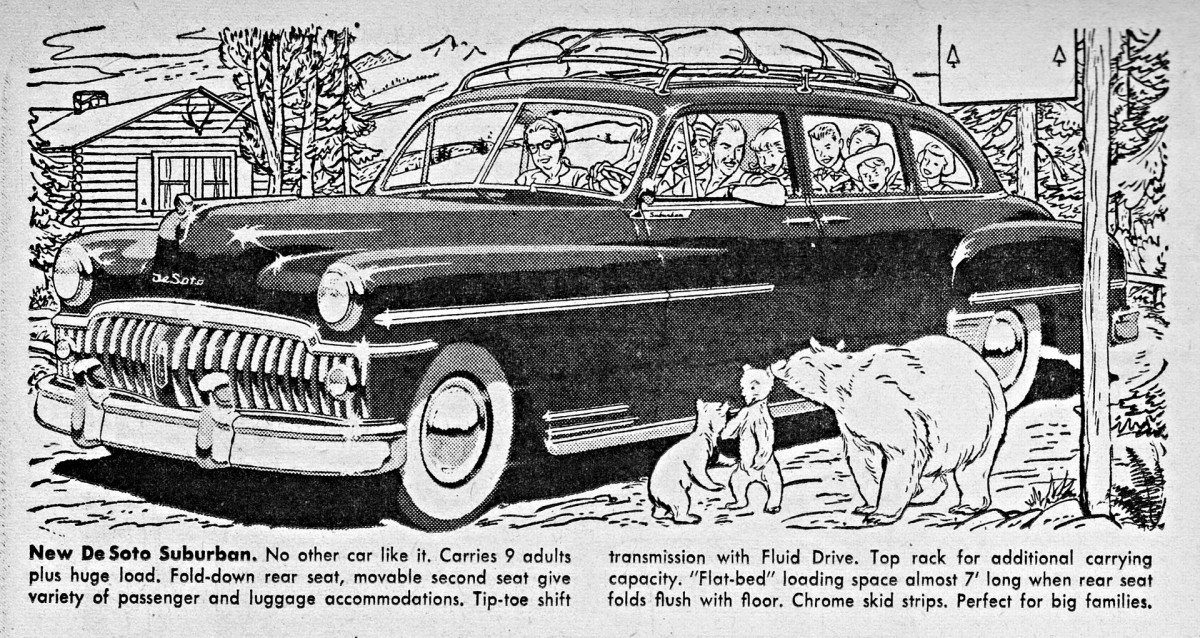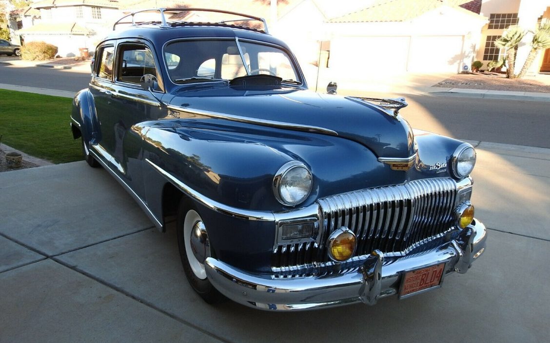 my older brother had a 1948 DeSoto sedan. Very cushie upholstery. Ran very smooth. The fluid drive was much better in snow than a “Stick” shift. What was neat was the speedometer. It would glow Green under 50 mph, then got to Yellow and if too fast it went to red. I remember thinking that all cars should have that feature. Very reliable car.