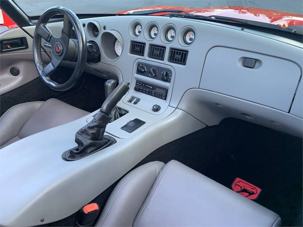 Dodge was conscious of weight minimization when it released the Viper, which is one reason it didn’t offer airbags or air conditioning on early cars. Airbags first appeared in 1996, and this car features ice-cold A/C. The Gray leather upholstery presents as nicely as you might expect when considering the odometer reading. There’s no evidence of wear and no signs of crumbling plastic. The gauges look crisp and clear, and there are no aftermarket additions. As well as A/C, the car features power windows, power locks, a leather-wrapped wheel, and a radio/cassette player.