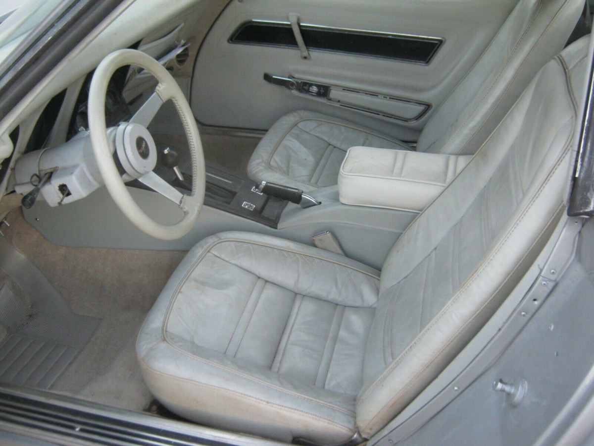 Right off the bat, that right front Firestone 500 tire leaps out at me. If you are too young to remember, the 500 was considered a defectively designed tire and eventually almost 20 million of them were recalled! I haven’t seen one on a car in decades! Between that and the SUV tires on the left hand side, I’d be towing this car to the tire store immediately after purchase! However, the seller tells us it has only 60,000 miles, a good thing if it’s true (more later), and that it is numbers matching, which helps it’s value with Corvette folks, even on a less-desirable model like this one.