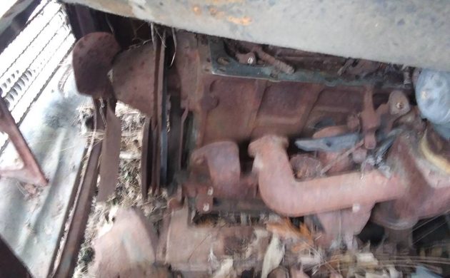 The engine room reveals the bulk of a 145 gross HP, 235 CI, in-line six-cylinder engine, but as with this car’s exterior, it, too, is missing some important stuff. It appears as if someone started to dismantle it, but the image isn’t clear enough to discern its total condition. Looking inside, a clutch pedal is noted, meaning that this is a three-on-the-tree Chevy.