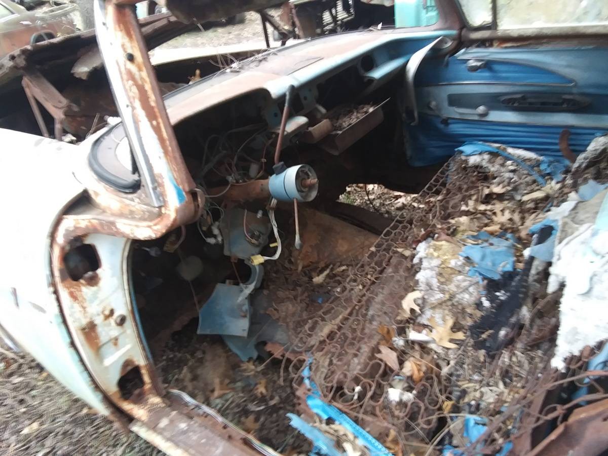 The engine room reveals the bulk of a 145 gross HP, 235 CI, in-line six-cylinder engine, but as with this car’s exterior, it, too, is missing some important stuff. It appears as if someone started to dismantle it, but the image isn’t clear enough to discern its total condition. Looking inside, a clutch pedal is noted, meaning that this is a three-on-the-tree Chevy.