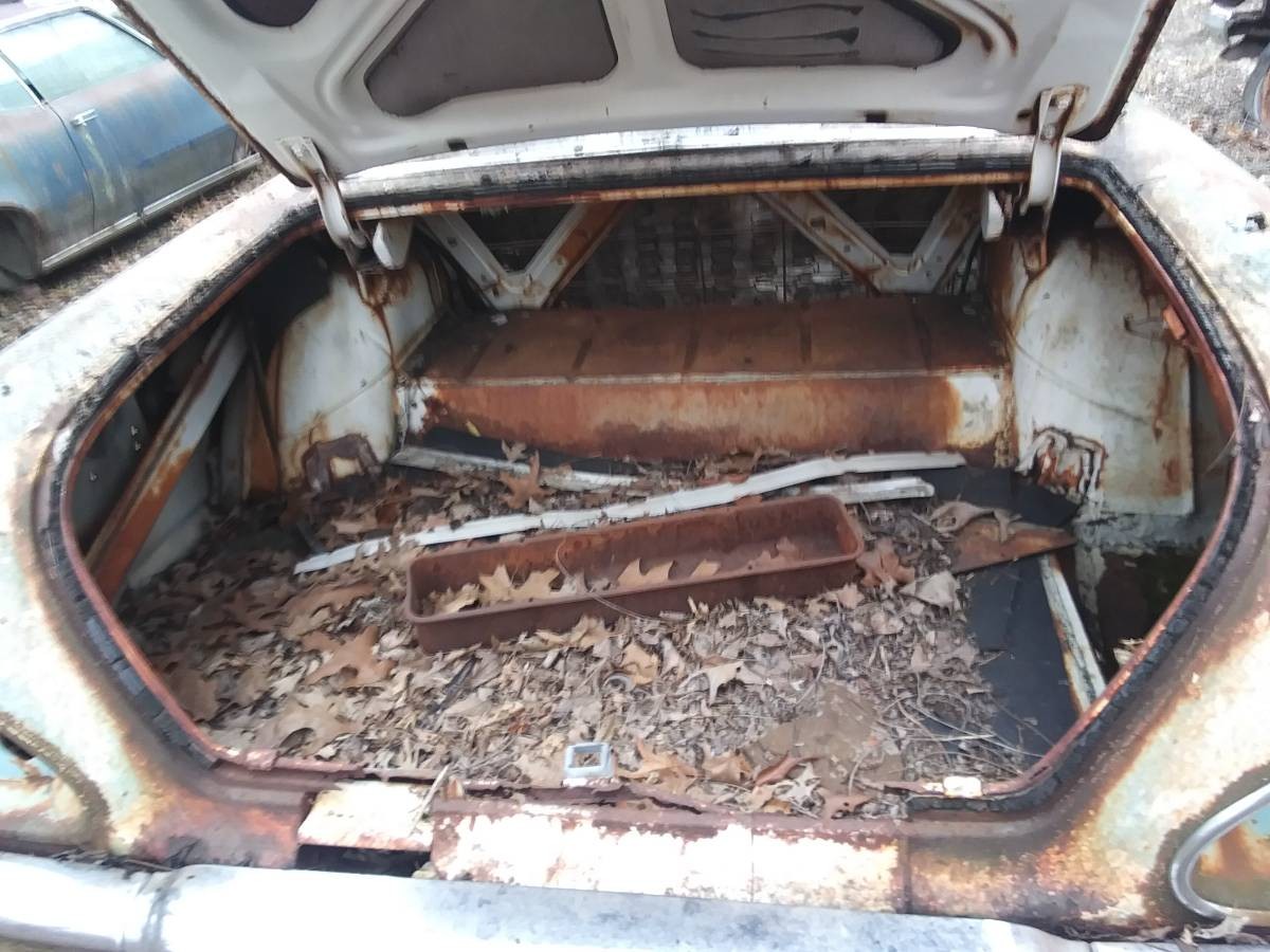 The seller tells us, “WHAT YOU SEE IN THE PICTURES IS ALL THERE IS TO THIS CAR.” What I see is lookin’ shaky. The body, actually, appears to be fairly solid, but it’s the portions that you can’t see (the frame, etc) that are concerning. The lack of a windshield and rear side windows probably hasn’t helped the floor pans any. Other parts, like the trim and taillights, have gone missing, and the clutter in the trunk is obscuring the pan. The surface rust is obvious, but some, in the valance beneath the trunk lid and in the bottom of the passenger door, for example, may be more invasive.