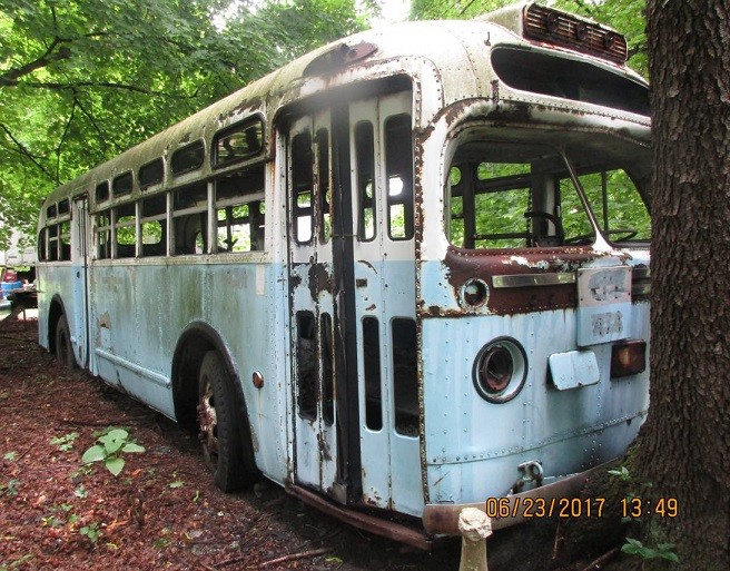 The writer is right; I look at this bus–which probably traveled city streets from about 1947 to roughly 1959 when the newer-style GM buses came out and wonder what kids rode on these across town on a Saturday with their buddies then, that are, say, in their 70s now? What couples met one another on one of these, simply commuting to work, that are now celebrating 50-60 years of marriage? If walls could talk, indeed………