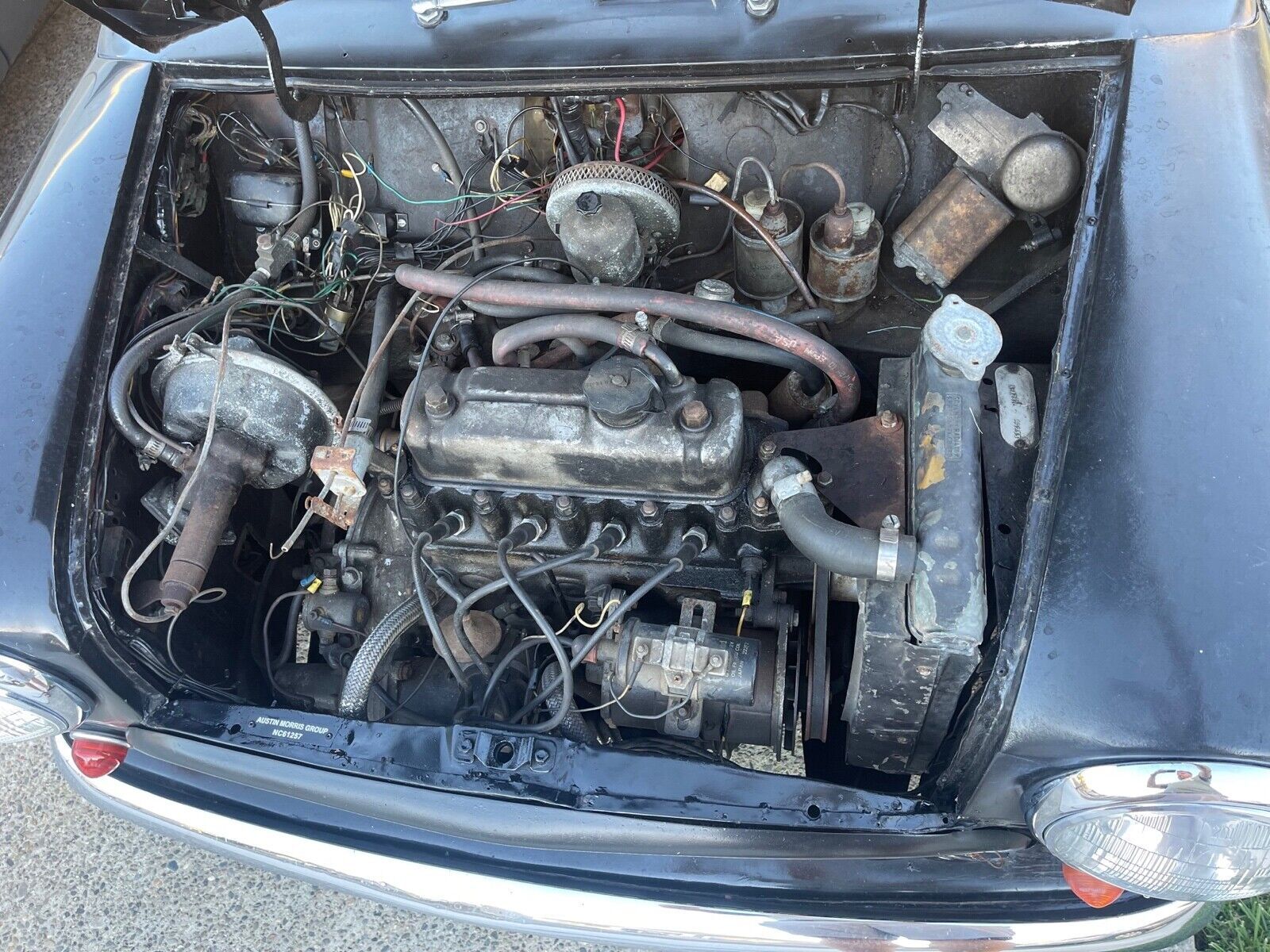 When you get the car home and restored, you’ll have an original Mark 1 Mini with the 850-cc (as the ad describes it; actually 848-cc) engine. That won’t knock your socks off for power, and probably would not do at freeway speeds, but think of how good you’ll look driving around town. The car is currently black, and perhaps some wizardry could bring back the paint (obviously not original), but this is really a blank slate to work with. You will want to strip the grille, which is black rather than factory chrome. From there, the Mini color palette is yours to pick from. Personally, I’d go red with a black top, which is what my mom’s 1960s Mini was when I was growing up in Montreal. That care was a beater with a rusted-out floor, but man, did she love it.