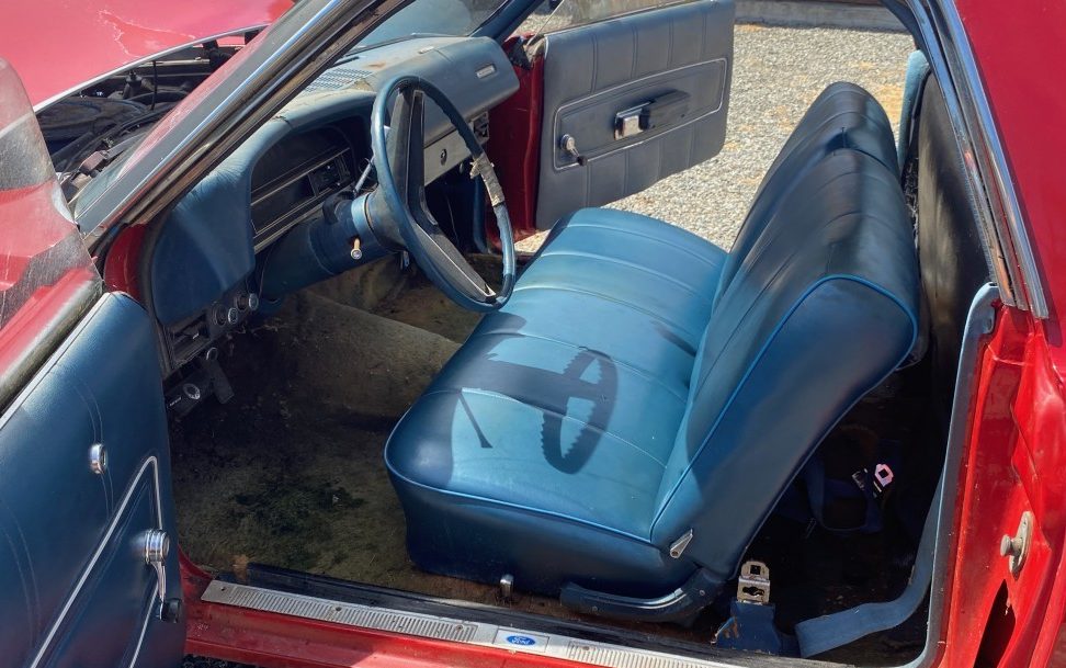 Under the hood is a 210 gross HP, 302 CI V8 engine, one that the seller describes as, ” a pre smog vehicle before engines got crippled“. That’s true in this case though the EPA knives were sharpened by ’71 and starting to attack, there just wasn’t any impact, yet, on this venerable Ford engine. The motor is stated as being capable of turning over, but interested parties will have to contact the seller to get any further information. A three-speed automatic transmission conveys power to the rear wheels.