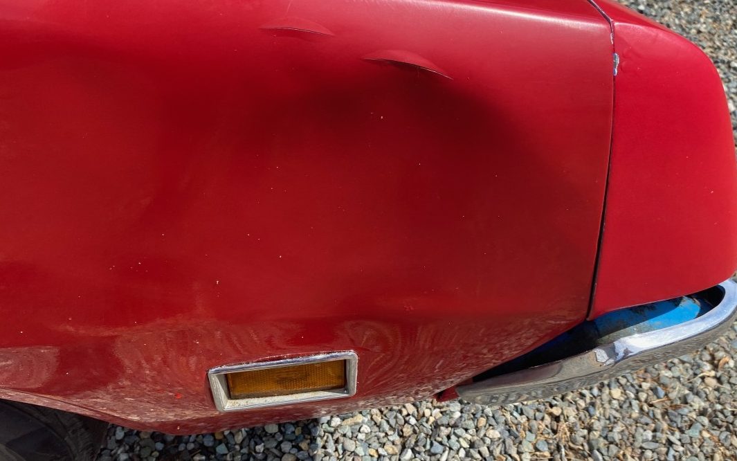As for the interior, the seller advises, “dash and carpet in rough shape and a door vent/speaker cover missing. Ignition switch non-op and likely other switches ( lights, etc… no longer work. ) No radio. Windshield is cracked. Door window weather seals missing“. I thought it odd that the interior coloring is blue, considering the red exterior, but the repaint to red explains the not usually found combination. The seating upholstery and door panels look OK but as stated, the carpet is very shaky and the dash pad is done. It would be advisable to check the underlying condition of the floors.