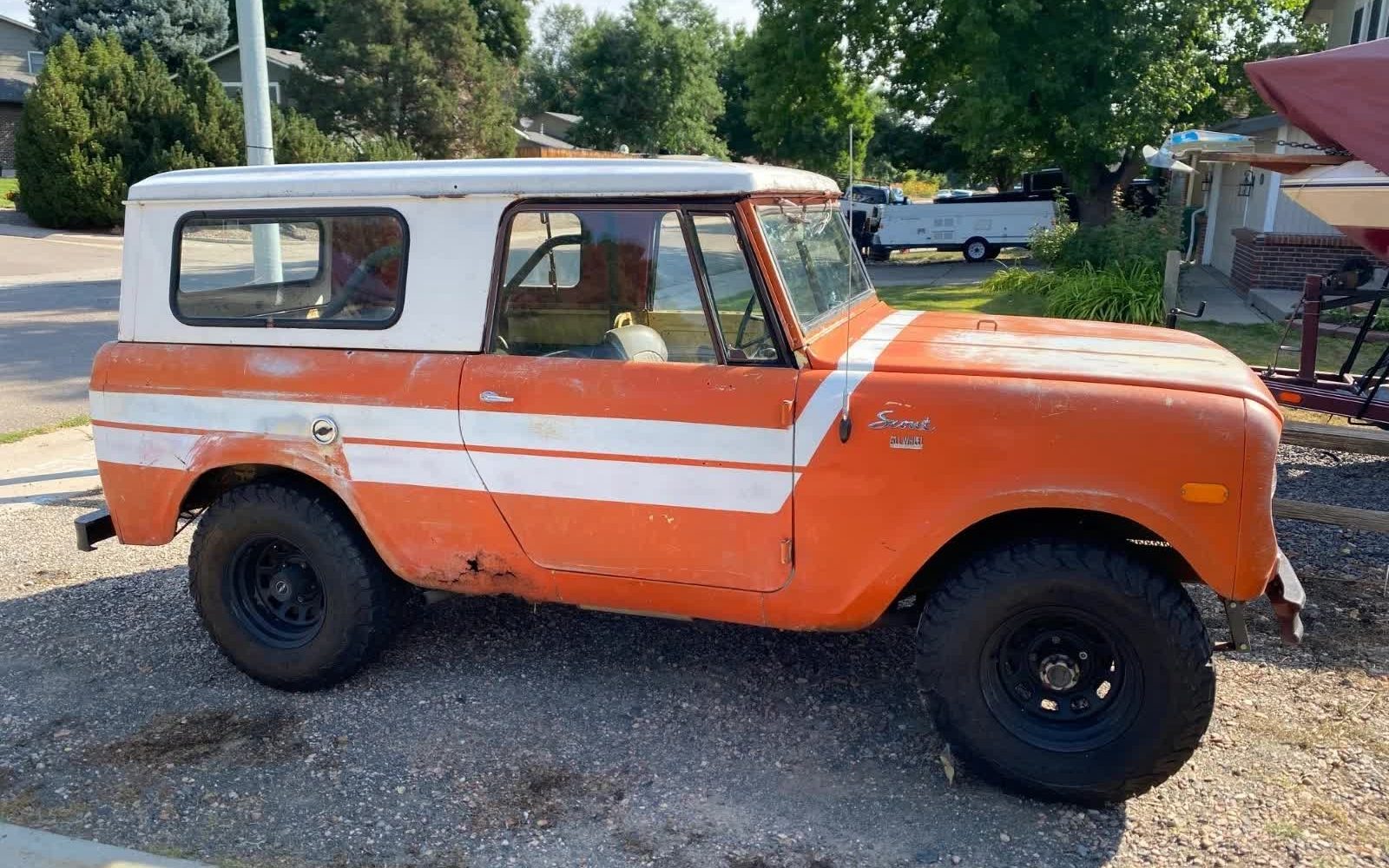 The listing skipped any decent picture of the vehicle’s front, so here’s one from a previous BarnFinds article, showing something closer to the Scout’s original color. The featured truck comes a replacement right quarter panel, the original radio and gas tank, and more.
