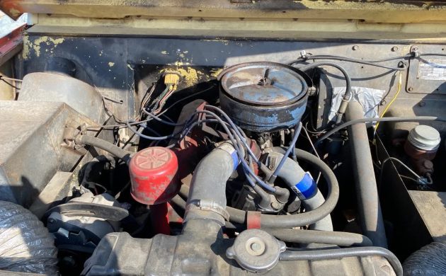 This should be the 152 cid (2.5L) inline four cylinder making 92 HP and 142 lb-ft of torque (gross), not enough to bust a move on today’s soccer vans but easy to maintain and perfectly fine for rock crawling and leisurely road travel. Thanks to Automobile-Catalog for some details.