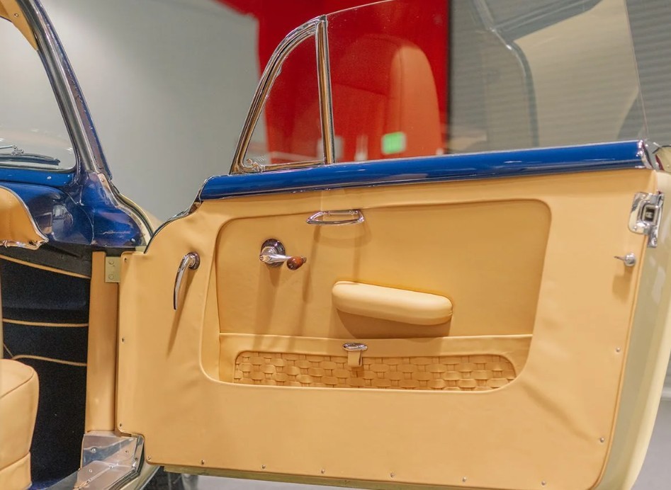 If you’re familiar with Fiat, you know that it built a V8 engine – known as the Otto Vu – and plunked it into several heartbreakingly stylish cars known as the 8V series. The same engine and chassis were sold to Siata and several coachbuilders. Designed by Gianni Giacosa, the 2.0-liter incorporates an aluminum block and head, 70-degree angle, and three main bearings; this one breathes through two Webers and produces 125 hp. The gearbox is a four-speed manual. Recent work includes rebuilding that transmission and overhauling the cylinder heads, distributor, carburetors, and brakes. A new exhaust was fabricated, and the whole kit was tuned into running order. This car has attended Pebble Beach twice – an anomaly since the committee prefers that cars show only once.