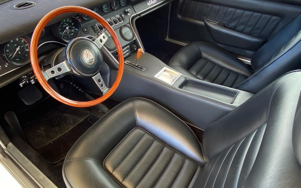 The seller of this Ghibli states that it has been domiciled in the Golden State since 1977 and it is, “just as found from long-term storage” which spanned a nine-year period. While this Maserati looks great in silver (they look great in any shade actually) this example is a repaint from its original “Azzurro Artico” blue-green metallic finish. There is apparently evidence of the original color in places where the silver has chipped away, and the silver itself is showing some notable fade on the hood. The magnificent lines of this Ghibli are still, well, magnificent; the body is straight and properly aligned and proudly displaying its Ghia lines. The seller claims this to be a rust-free car with the exception of some corrosion that has started in both doors. The floors and underside look to be sound.