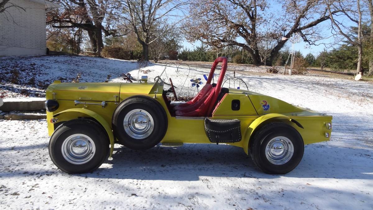 It looks like someone is a University of Kansas fan. Everything seems to be in nice shape, and as the seller states “one of a kind, very fun to tool around town or parade.”