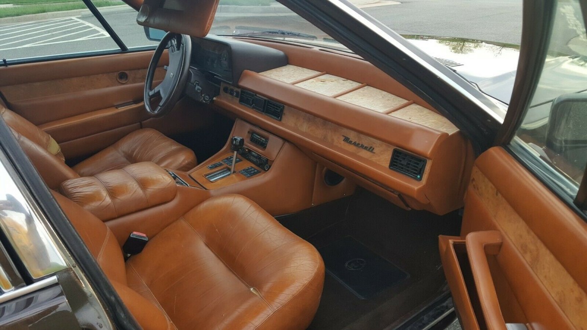Even better, the interior isn’t trashed. I half expected to find out this Maserati actually had a healthy drivetrain, but of course, the opulent cockpit would need total restoration. Not so, as it still presents quite well with no major flaws that I can see from here. Those seats look incredibly comfortable, but they appear ghastly if left to bake in the sun. The seller notes the air conditioning was converted, but that a faulty control unit is preventing it from working. Now, the seller does reveal there are some small tears in the leather in both seats, but that he’s including “replacements” in the sale – but he doesn’t elaborate as to whether this is for an actual seat or a leather kit. Either way, good news for the next owner.