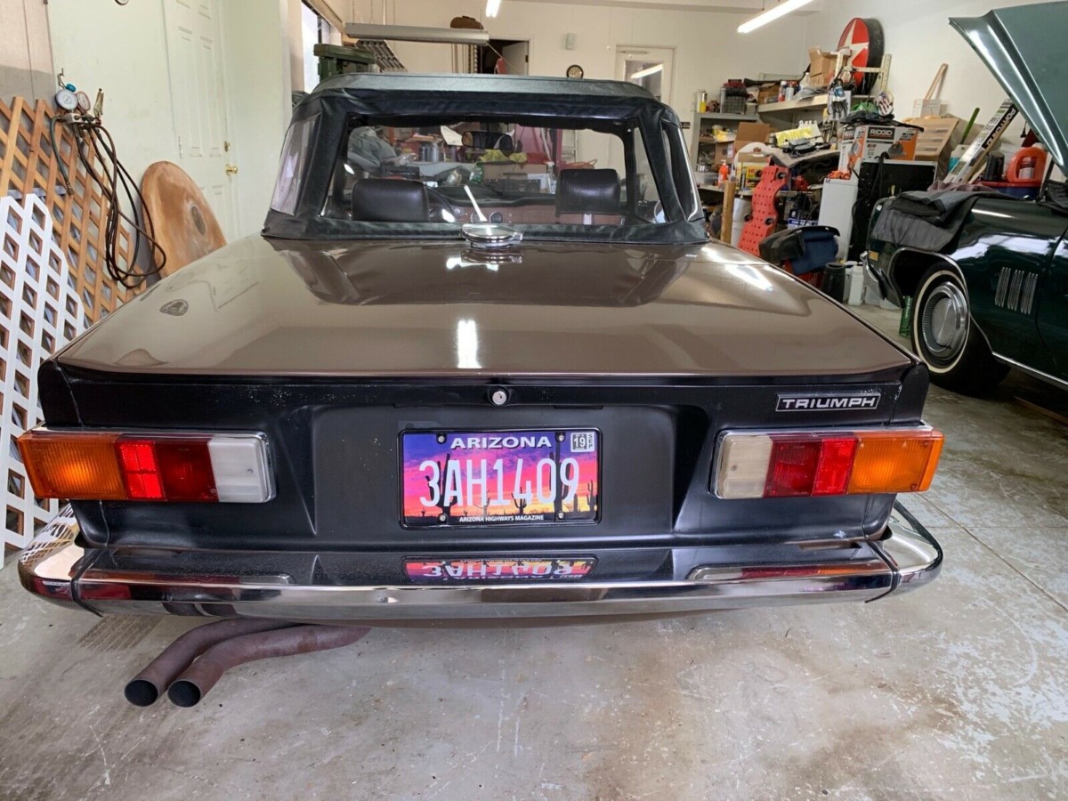 The distinctive satin black rear of the TR6 is either original paint or has been repainted correctly. There are few, if any, sweeter exhaust notes than that of a TR6 through the stock exhaust system as this car has. Music to my ears! I have to admit, I like the art on that Arizona plate, too!