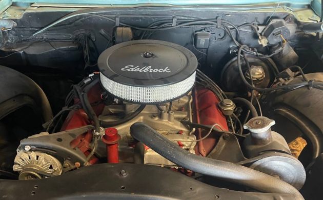 There’s no description or details regarding the engine other than to say, “Engine runs smoothly and drives like a dream.” So, what is it? Dynamic 88s were available with three different versions of Oldsmobile’s excellent 425 CI V8 powerplant. The standard edition was a high-compression, two-barrel carburetor-fed 310 gross HP version. This car’s engine has been modified with a four-barrel carburetor, a replacement intake manifold, and an open-element air cleaner, so that gives you a bit of an idea what’s going on under the hood. A Turbo-Hydramatic 400, three-speed automatic transmission manages the gear-changing department.