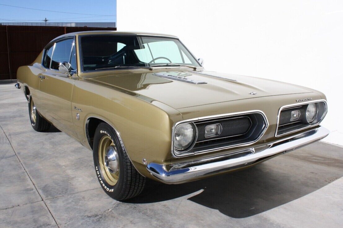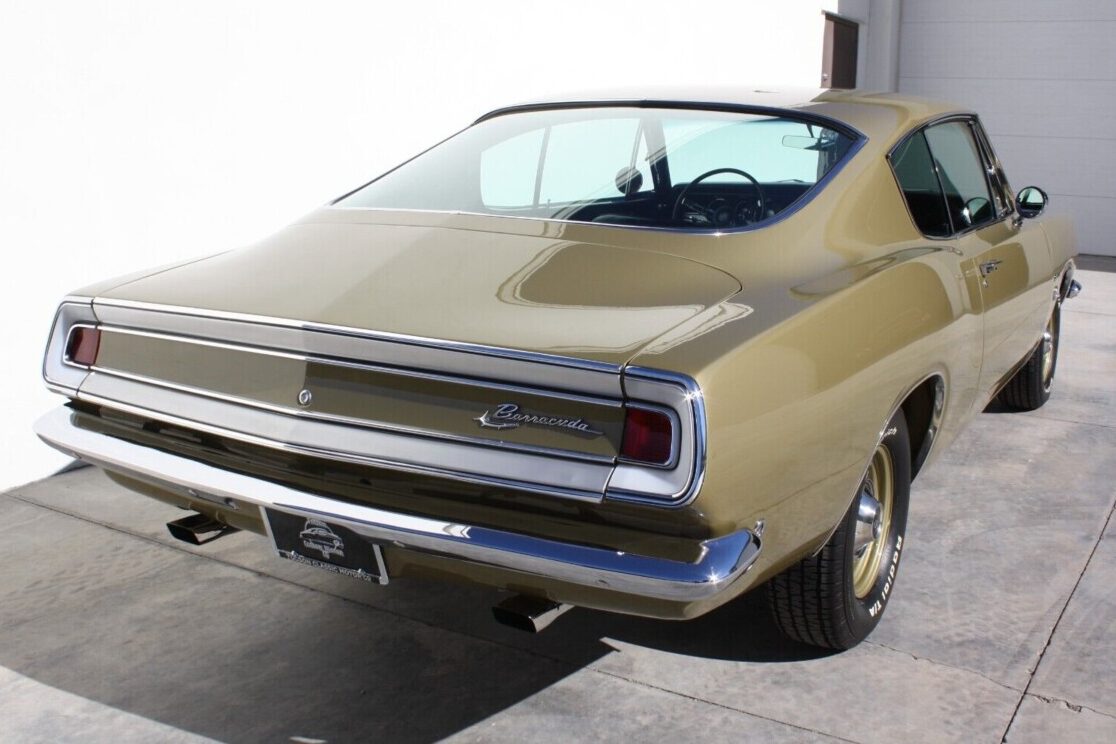 The seller indicates that a decade has passed since this Barracuda underwent a rotisserie restoration, but its overall condition would make it easy to believe it only ended yesterday. The process included returning the panels to a laser-straight state before applying the original Code J Ember Gold paint. They recently performed a sand and polish, with the car presenting in as-new condition. If the exterior presentation is stunning, its underside is no less impressive. The floors wear the same Ember Gold, with the mechanical components painted in their correct colors as per the factory. I searched for surface corrosion, but this is one of the cleanest classics from this era that I have seen for a while. Most of the tinted glass is original, although this Plymouth features a new windshield, window rubbers, and seals. The restoration included a trip to the platers for the bright trim pieces to return their appearance to show quality. The color-coded steel wheels and dog dish hubcaps make this Formula S a genuine sleeper when we discover what hides under the hood.
