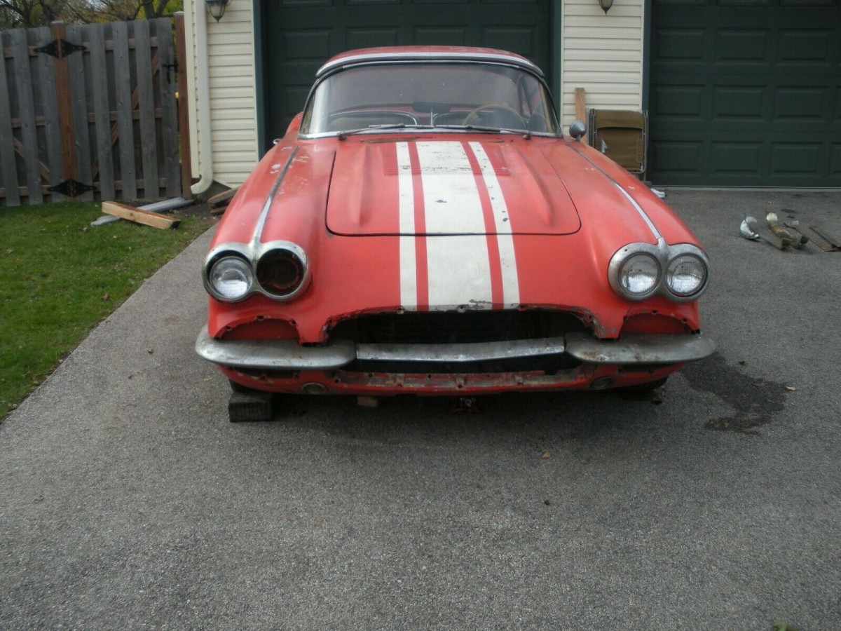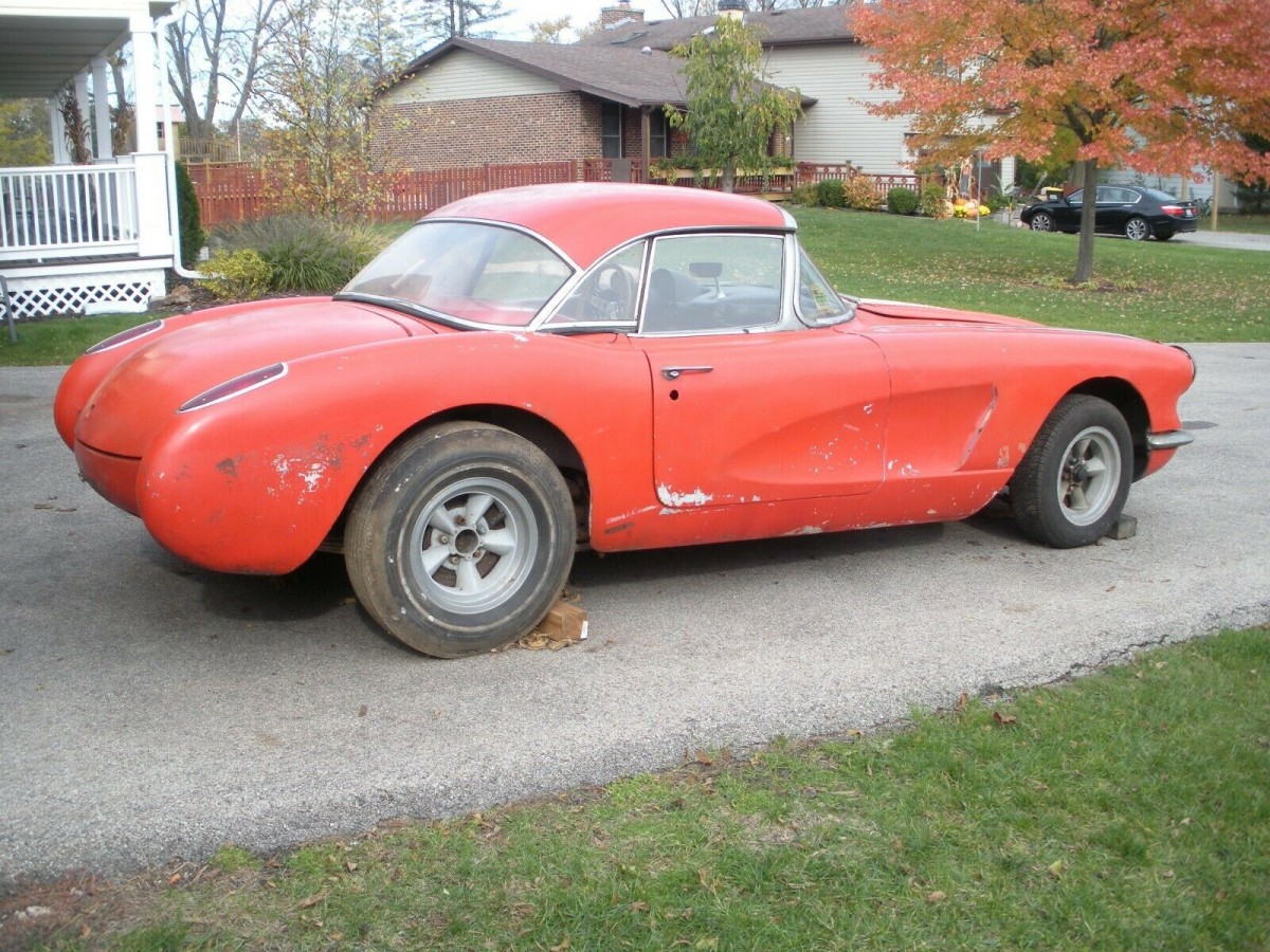 I have a C2, this is an interesting car if indeed it was a real 1958. They can get pretty spendy. It almost looks like it may have had an engine fire? or perhaps it was flooded out somewhere. In any event it does not have the chrome bars on the trunk, as you would expect. The one saving grace is that if you pocket book is large enough you can make it nice again.