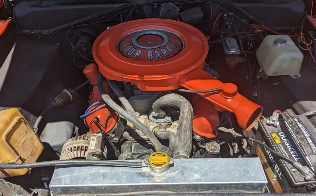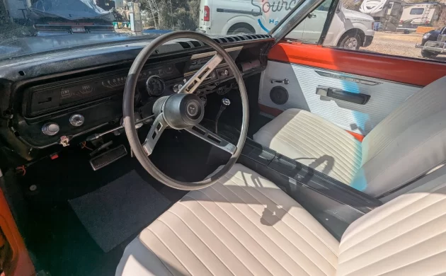 Orange isn’t the original color (not available in ’68), and it’s missing almost every single GT$-specific piece if you wanted to restore it to factory. That’s not the correct seat upholstery or door panels, and you’ll have to find the GTS door panel emblems (not reproduced, and can be pricey), and a GTS trunk finish panel, and the hi-po 340 exhaust manifolds (they were reproduced but now are hard to find original or reproduced, and expensive either way). The rest of the GTS parts (emblems etc) are available aftermarket.