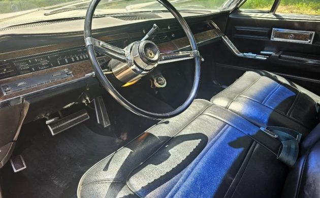 Inside, the black upholstery, vinyl standard, leather as an option, is unmarred, and the headliner has not succumbed to stalactite mode – it’s up there where it should be. A/C was an option on Imperial, and it’s not said if this car is so equipped (there’s no actual underhood image included). I’m looking for interior A/C vents, but see none. The seller mentions that the walnut trim has become brittle.