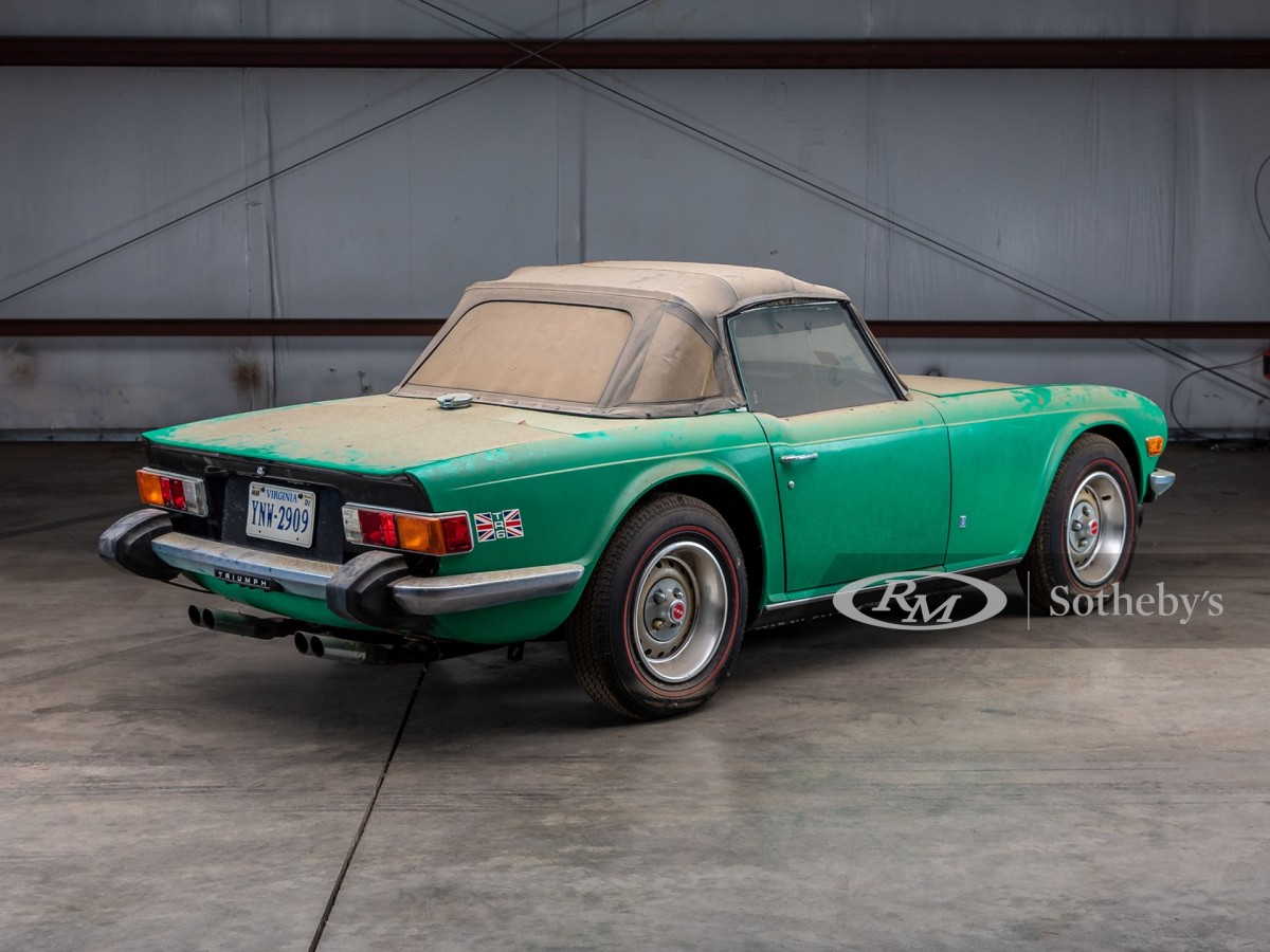 British sports cars, to their credit, are among some of the most popular vintage classics out there. And it’s clear why there’s always a healthy assortment at local Cars & Coffee and other enthusiast gatherings – they’re fun to drive, easy to find in driver-grade condition, and the robust network of fellow owners and parts seller means you’ll never be without good advice or spares. But how do you stand out in a car so many others have? Find one of the rarer colors offered on an already-desirable 1976 Triumph TR6, like this one here on RM Sotheby’s website wearing Java Green paint. Bidding is at $6,750 at the moment with three days left.