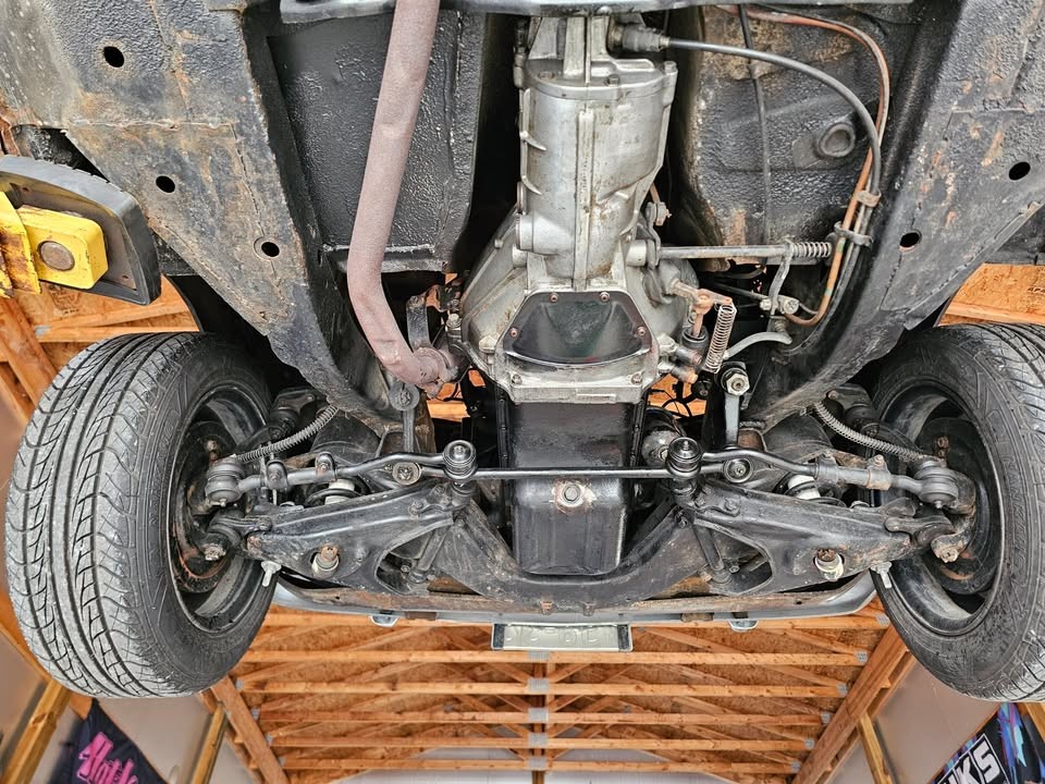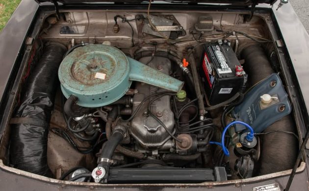 The Marketplace ad is less revealing than the prior listing, but we learn from both sources that the radiator has been replaced with a CSF equipped with an electric fan, the 1500 cc in-line, overhead cam, four-cylinder breathes through a single Nikki carburetor, the suspension has been lowered, and the ignition coil is new. An electric fuel pump has been installed. The S57 engine developed about 87 hp, with power delivered to the rear wheels via a column-shift three-speed manual. The car rides on 14″ Watanabe wheels painted black. Surface rust on the underside competes for attention with the new-ish suspension components.