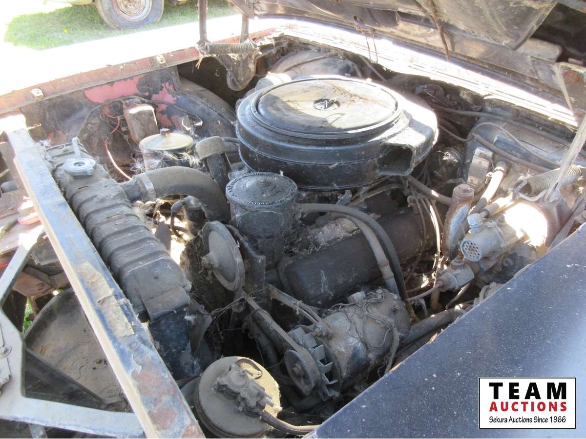 As with most of the vehicles in the auction, this Caddy looks to have been outdoors for many years. The body is faded and rusted with much of the metal needing repair or replacement. And the passenger compartment isn’t too encouraging, either, when you open the doors and find much of the front floors gone. Yet the upholstery isn’t as bad as you might think, although the headliner is falling down.