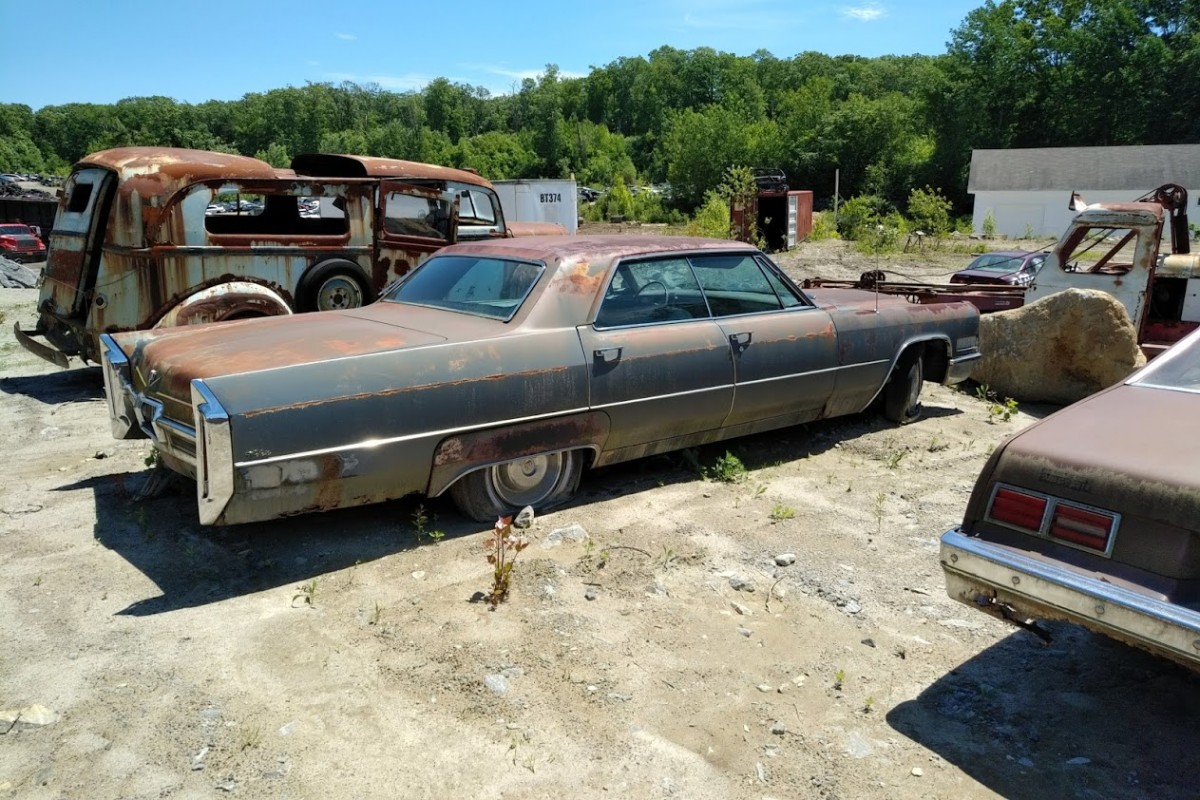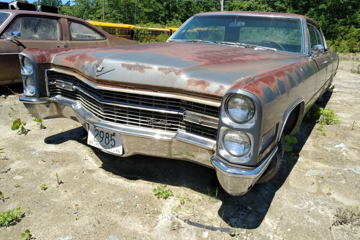 Then there’s this land yacht of a Cadillac, which looked like it had only surface rust to contend with in terms of cosmetics. The old-school Vermont license plate is one I have not seen in decades, and it’s remarkable it survived all these years in what was a very messy junkyard. The Cadillac was likely the best of the lot in terms of saving.