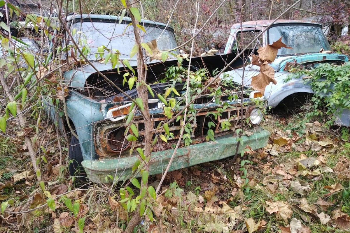 Nothing better than wandering around in an old junkyard. This one, I find odd in that everything is placed just anywhere and cars are mixed with real junk. I’ve not been in automotive junk yard like this where everything is willy-nilly dropped just in any place and facing in any direction. I’d guess the owners heart is just not in it. Being OC though, I’d be wandering around rolling up windows, closing hoods, doors, and trunks protecting what’s left from the weather and critters.