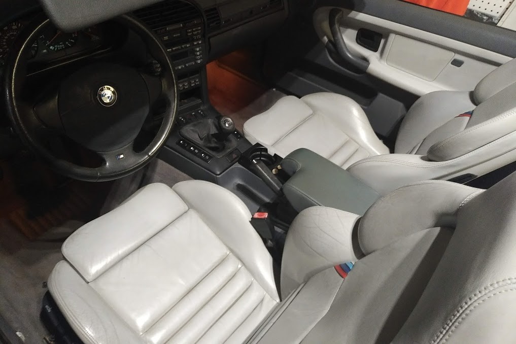 The interior was pretty foul, with tons of coffee stain and dog hair, and the original seats were garbage. They got torn out pretty quickly and I did my best with steam cleaning the carpets. The armrest was also replaced and the sagging and non-locking glove box door fixed. At some point, the rear seat will need to be treated for sun damage.
