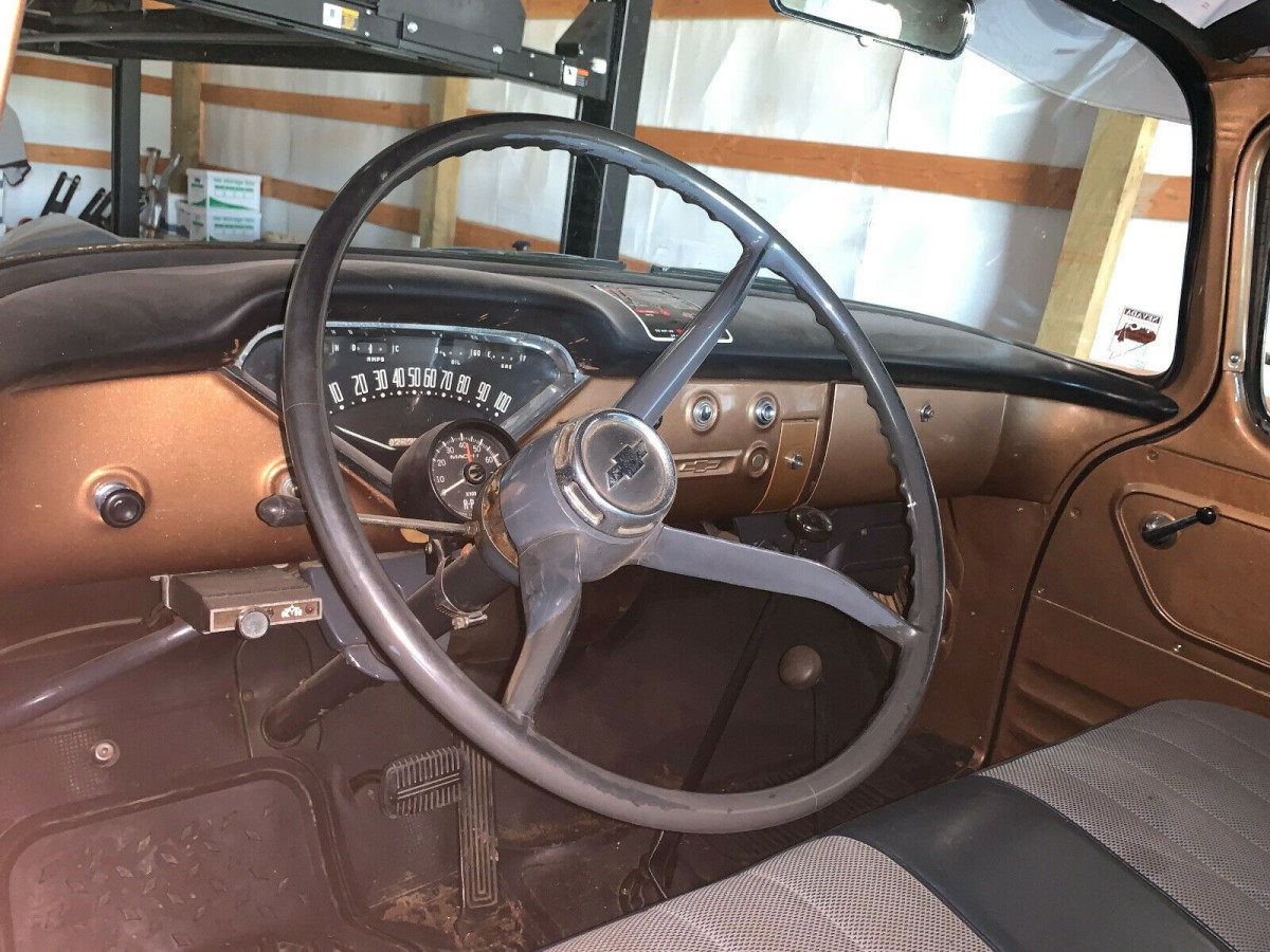 Chevy offered an interior color called Comanche Gold Metallic in 1959 but I’m having a difficult time determining if that’s the color seen in the above photo. It appears more bronze than Chevy’s original color. The bench seat looks to be in very good condition, however, there is a tear and some sag in the fabric on the driver side. Is the upholstery pattern original to what Chevy offered in ’59? Do you think the truck’s interior has been reconditioned?