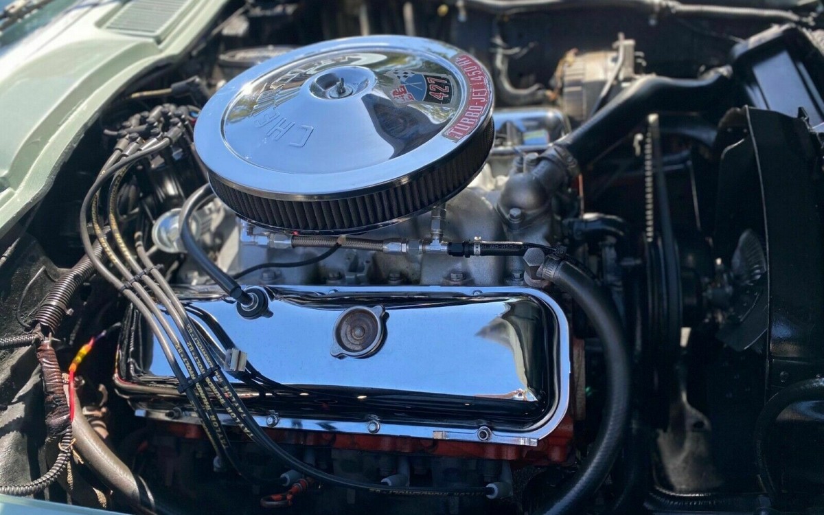 The 427 is the Corvette’s original engine, and it’s fully built with a bigger cam plus some other goodies and is said to run great. The car also retains the original 4-Speed manual transmission. The ‘Vette has recently been serviced and tuned and has a lot of get up and go, and with the side pipe exhaust, it’s loud and said to make a presence wherever you are. If you need to slow down in a hurry, the car also has four-wheel disc brakes for quick stopping power.